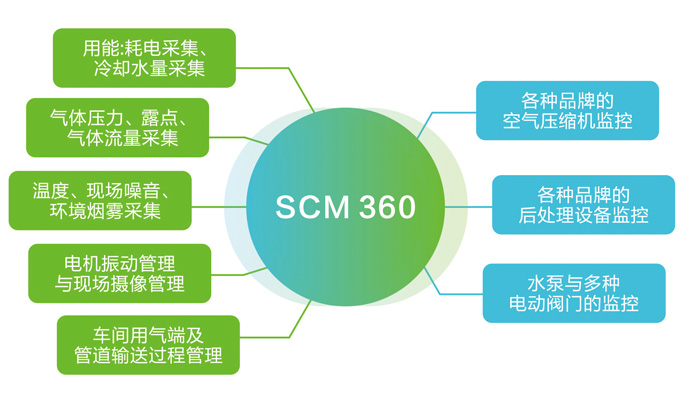 SCM360壓縮空氣系統(tǒng)能效管理平臺(tái),遵循行業(yè)標(biāo)準(zhǔn): T/CGMA 033001-2018,提供連接、監(jiān)控、分析、預(yù)測(cè)、優(yōu)化等增值功能。真正體現(xiàn)并發(fā)揮出工業(yè)互聯(lián)為生產(chǎn)管理帶來(lái)的便利性和經(jīng)濟(jì)性,為壓縮空氣行業(yè)物聯(lián)網(wǎng)應(yīng)用帶來(lái)變革與創(chuàng)新。